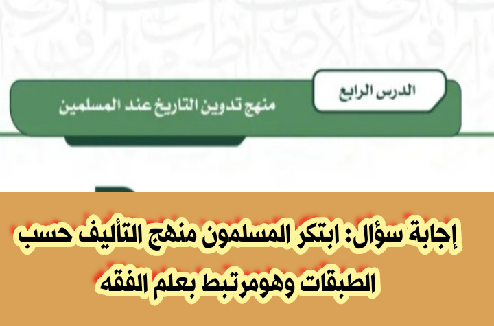 عزيزي الطالب / عزيزتي الطالبة إذا استصعب عليك سؤال ما، فلا داعي للقلق، تصفح موقع اعرفها صح، لمعرفة الإجابة الصحيحة بشكل مختصر ومفيد، ولكي تتعرف على إجابة سؤال: ابتكر المسلمون منهج التأليف حسب الطبقات وهومرتبط بعلم الفقه، وذلك من مادة التاريخ، للصف الثاني الثانوي، الفصل الدراسي الثاني، في المملكة العربية السعودية، تابعوا معنا قراءة السطور القادمة.