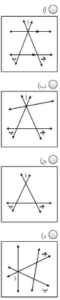 اختر الاجابة الصحيحة: أي الأشكال التالية يمكن استعماله لاستنتاج مجموع قياسات زوايا المثلث؟