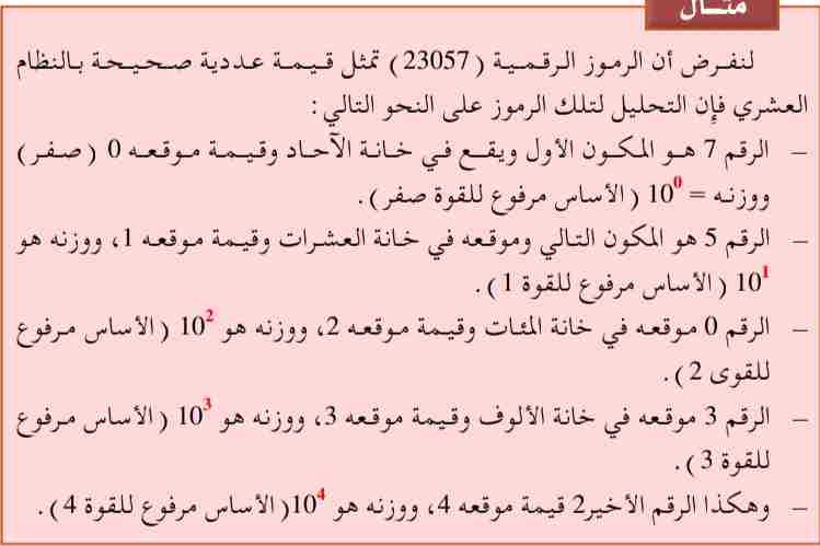 الرموز الرقمية المستخدمة في النظام (الأرقام).