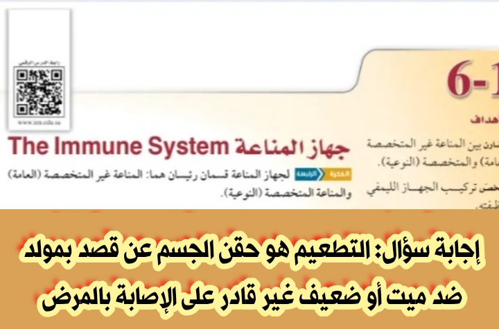 حل سؤال التطعيم هو حقن الجسم عن قصد بمولد ضد ميت أو ضعيف غير قادر على الإصابة بالمرض