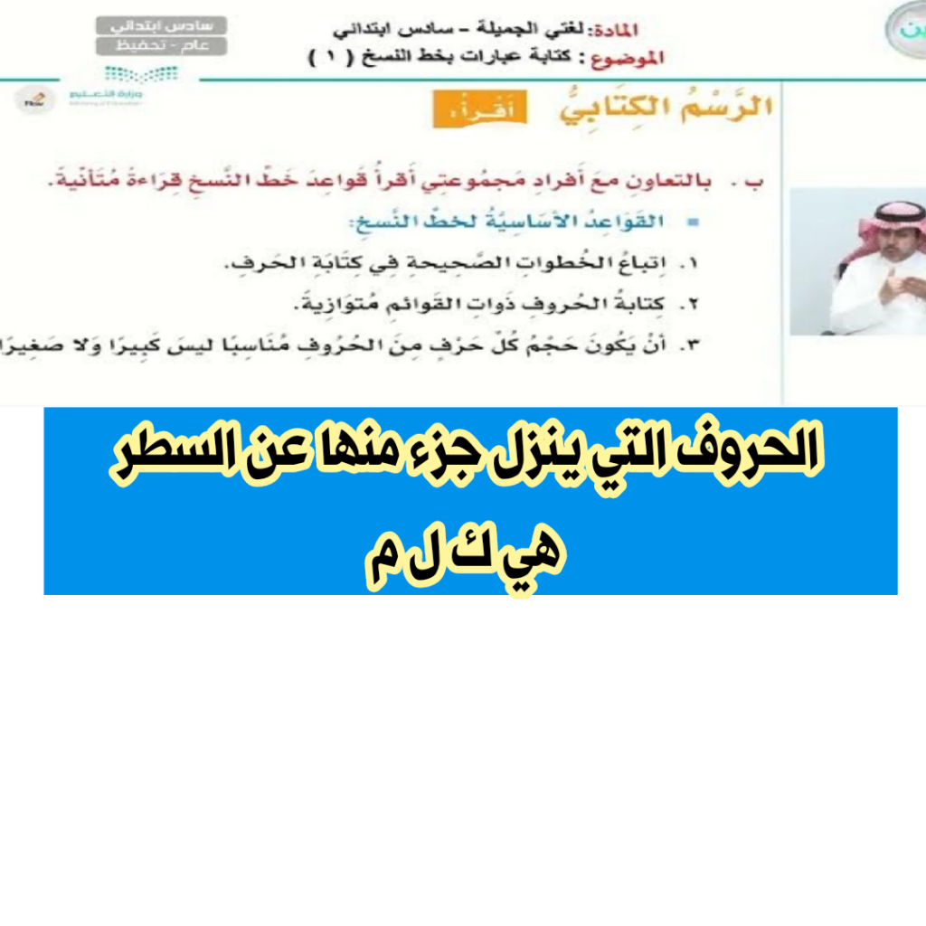حل سؤال الحروف التي ينزل جزء منها عن السطر هي ك ل م – موقع حروف