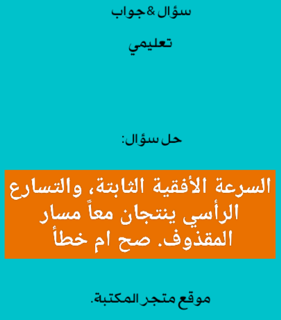 السؤال: السرعة الأفقية الثابتة، والتسارع الرأسي ينتجان معاً مسار المقذوف ؟