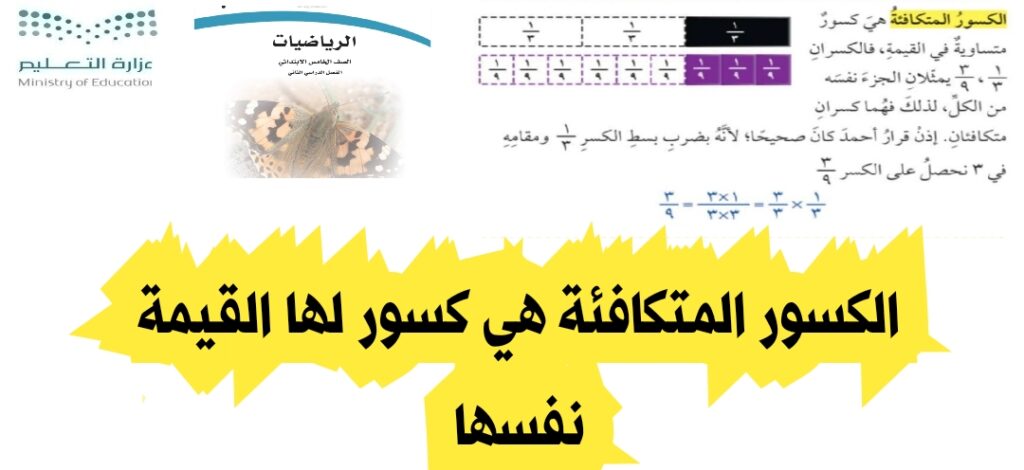 - تعلمنا أن: الكسور المتكافئة: هي كسور متساوية في القيمة.