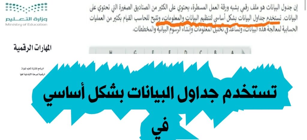 في اطار تنفيذ التوجيهات الرامية للاهتمام بنوعية التعليم وتحسين مخرجاته والنهوض بالعملية التعليمية في الوطن العربي، نسعى من خلال موقع حروف بتقديم معلومات عن تستخدم جداول البيانات بشكل أساسي في – موقع حروف كما نقدم حلاً نموذجياً وشاملاً لجميع المواد الدراسية، وذلك من أجل مساعدة طلابنا الأعزاء في دراستهم وتحضيرهم للإمتحان النهائي بشكل متكامل.