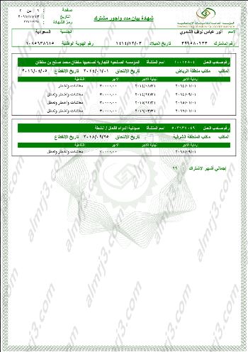رقم المشترك: تاريخ الميلاد: رقم الهوية الوطنية: