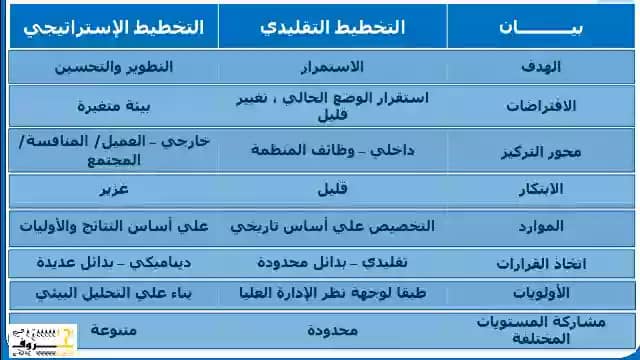 أهم الفروق بين التخطيط الإستراتيجي والتقليدي: