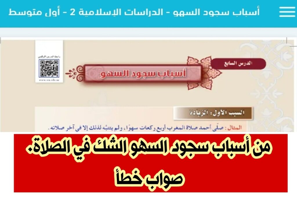 مرحبًا بكم طلابنا المتفوقين في موقع اعرفها، والذي يساهم في عرض الكثير من الأجابات الصحيحة والنموذجية على أسئلة المناهج السعودية، حيث أن سؤالنا اليوم يختص بطلبة الصف الأول المتوسط من مادة الدراسات الإسلامية، الفصل الدراسي الثاني، وهو من أسباب سجود السهو الشك في الصلاة. صواب خطأ، لذلك إستمرو معنا في الفقرات القادمة لمعرفة الإجابة الصحيحة.