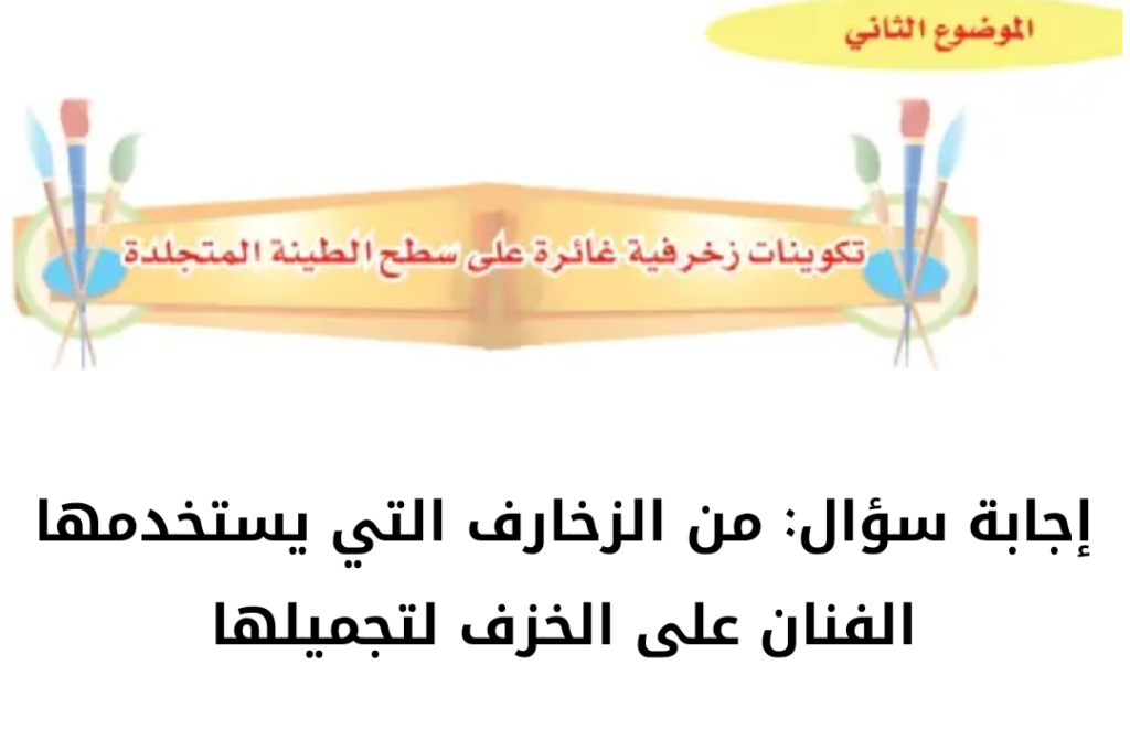 أخيراً أكون قد أتممت لكم كتابة هذا الموضوع، والذي قد تحدثنا فيه عن إجابة سؤال: من الزخارف التي يستخدمها الفنان على الخزف لتجميلها …، نتمنى لكم المزيد من التوفيق والنجاح في جميع المجالات الدراسية، نقدم لكم هذه العبارات عبر موقع اعرفها صح.